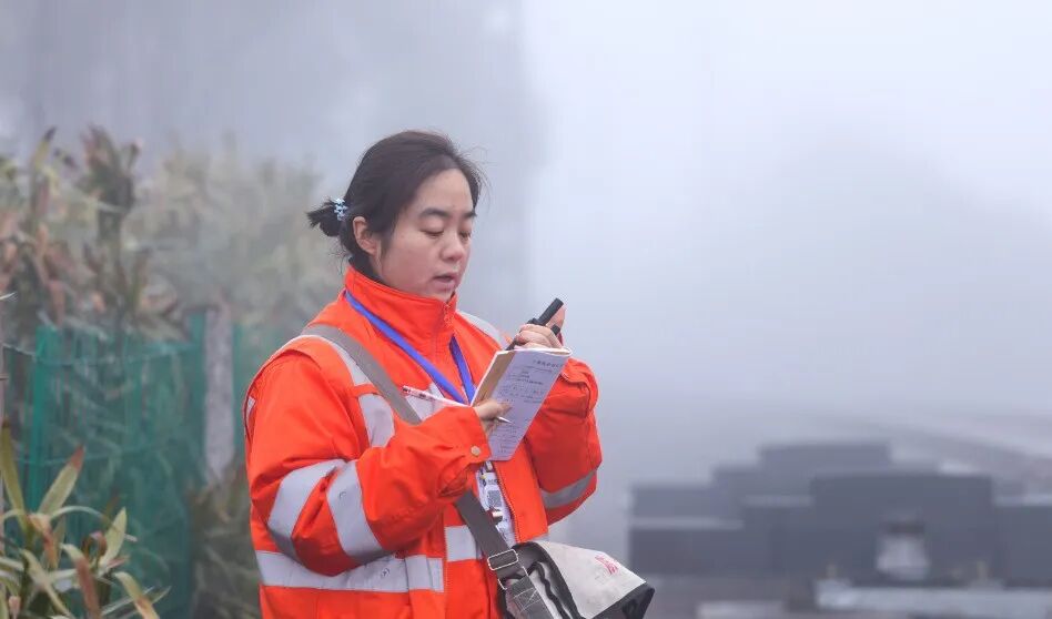 几抹橙色的身影准时出现在股道旁,其中两个就是李敏政和曹素珍。李敏政单膝跪在冰凉的轨枕上,道尺在他手中如游走的笔,仔细复核着每一寸轨距;五米开外,曹素珍手握防护旗,目光在远方与丈夫之间来回移动。
