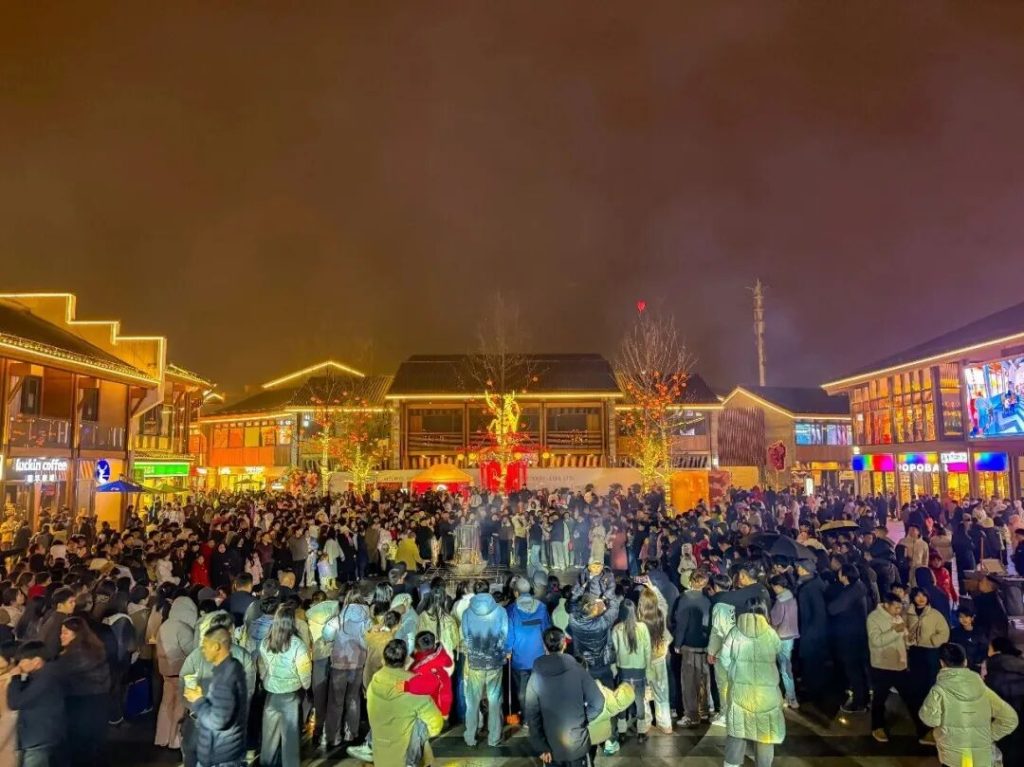 夜幕降临时,上饶山水的活力在灯火中愈发清晰。铅山河口老街的棋盘街区正式开街,古街上、老建筑里,人来人往、摩肩接踵;“仙侠世界”望仙谷的悬崖峭壁间,福龙巡游穿过山谷,非遗傩戏神秘上演,“福禄寿喜”4位“神仙”穿梭在人群中派发福气;婺女洲的百万级烟花秀点亮夜空,100余项非遗民俗齐登场,将徽州风情渲染得淋漓尽致……