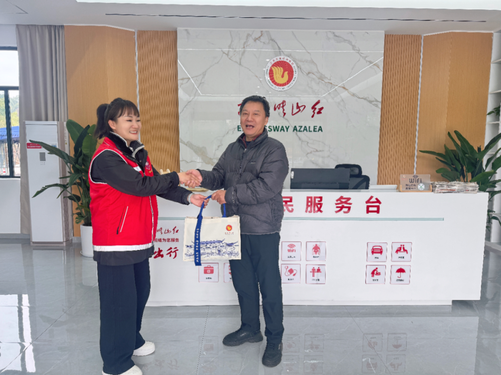 当天,年味正浓的工会驿站暖意融融,“熊文清班组”志愿服务队坚守春运一线,为过往司乘送上新春祝福与贴心关怀。一位从北京自驾赴赣的游客驶入驿站,长途驾驶的疲惫让他难掩倦容。站长李茜见状立即上前,热情引导他体验驿站的全新按摩椅缓解劳顿,细致介绍休息补给、ETC咨询等便民服务,还主动分享了熊文清班组的暖心服务事迹与玉山的风土人情。