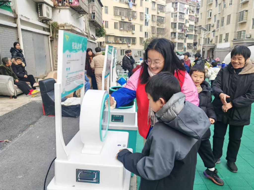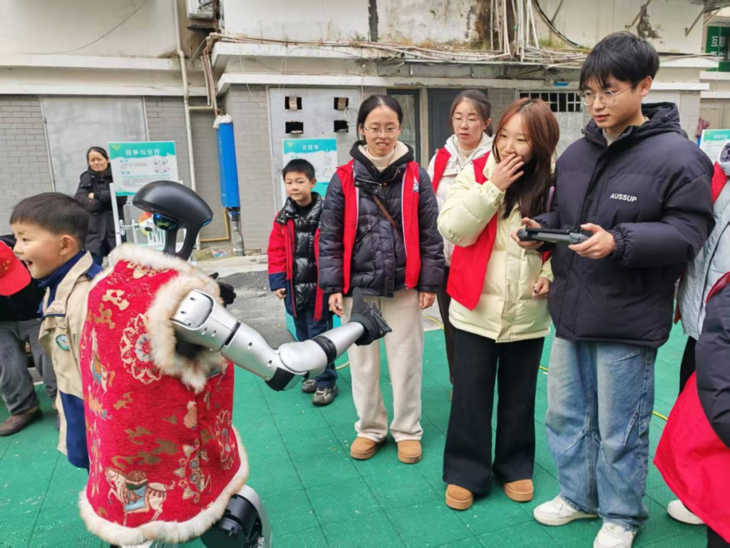 科普展示与动手操作环节,更是点燃了孩子们的热情。志愿者们逐一展示科普设备,耐心细致地讲解操作方法,从简单易懂的科学小实验,到灵动可爱的机器人、机器狗等操控,每一项活动都让孩子们跃跃欲试、满怀期待。大家围在志愿者身边,有的踮着脚尖认真观察,有的高高举起小手积极提问,有的小心翼翼地触碰设备大胆尝试,指尖触碰科普器材时的小心翼翼、成功操控机器狗后的欢呼雀跃、解开科学小谜团时的豁然开朗,交织成活动现场最动人的画面,欢声笑语不断回荡在社区活动室的每个角落,孩子们的脸上都洋溢着纯粹的快乐。