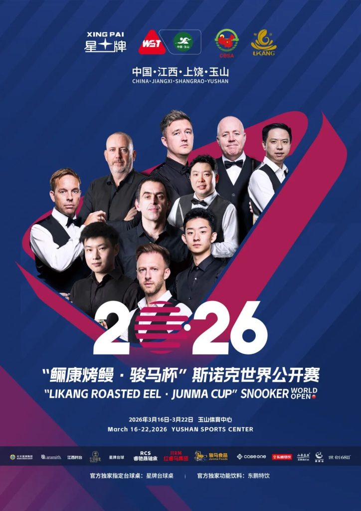 3月16日-22日,中国·江西·上饶·玉山2026“鲡康烤鳗·骏马杯”斯诺克世界公开赛将在江西上饶玉山燃起战火。