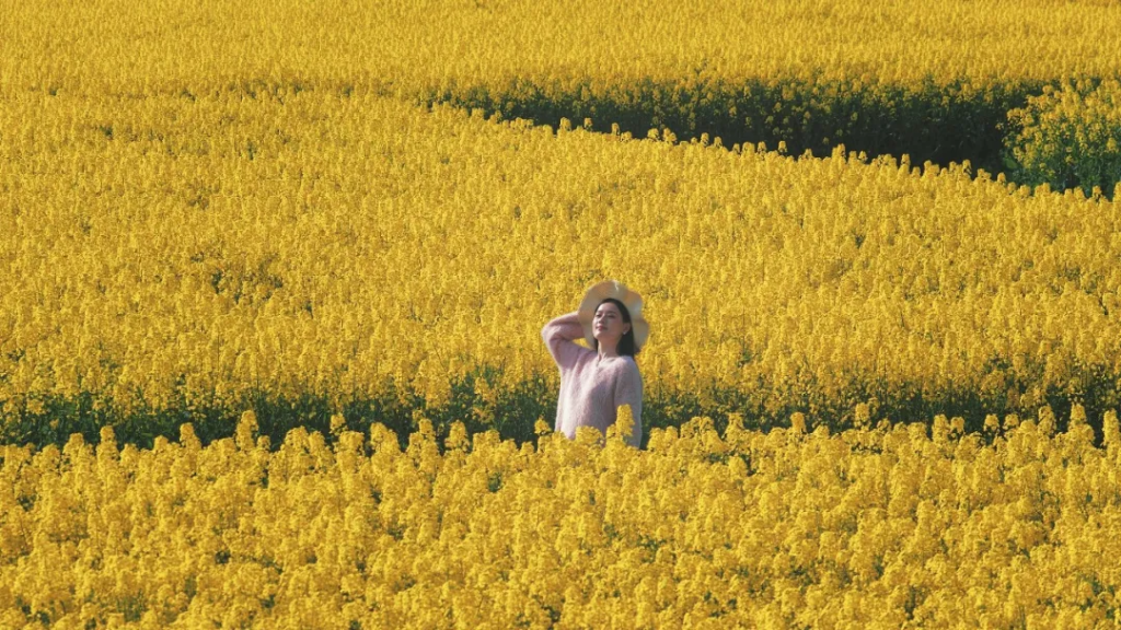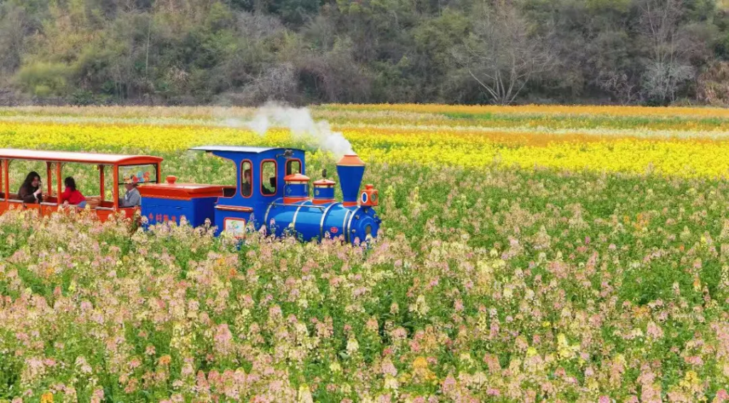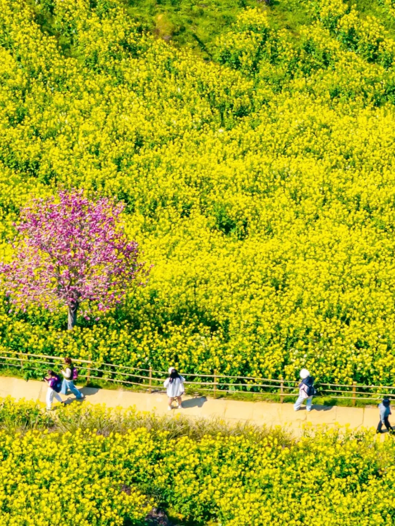 金黄的油菜花铺满田野,或是五彩油菜花点缀其间