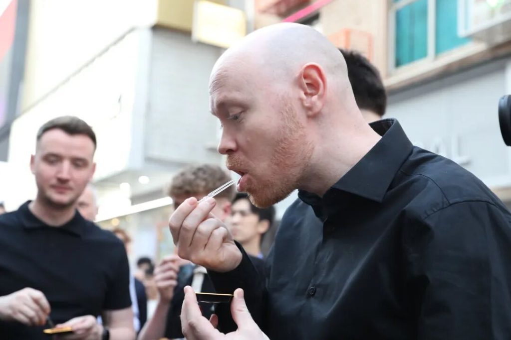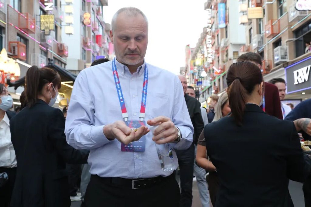 从赛场到街头,从球杆到筷子,斯诺克球员们在这里完成了从运动员到“美食体验官”的身份转换。他们与球迷们合影、签名、互动,笑容洋溢在每个人脸上。