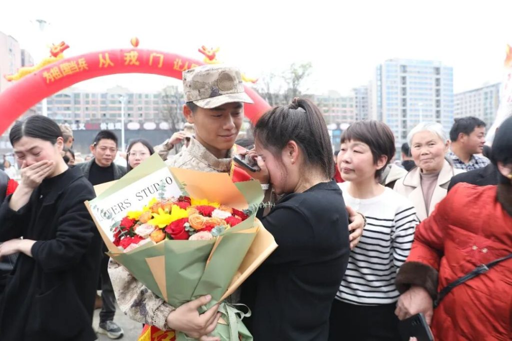 欢送大会结束后,新兵与家属合影留念、深情话别,正式踏上保家卫国的光荣征程。(记者 祝奕洁)