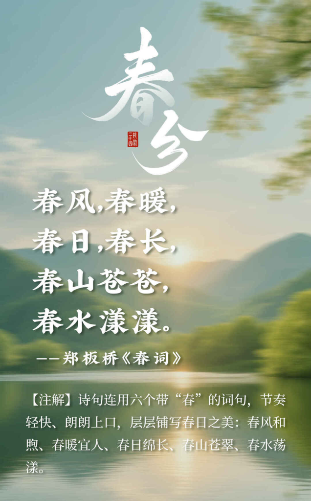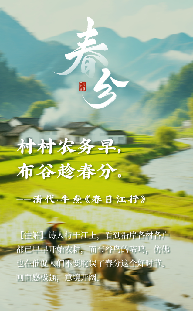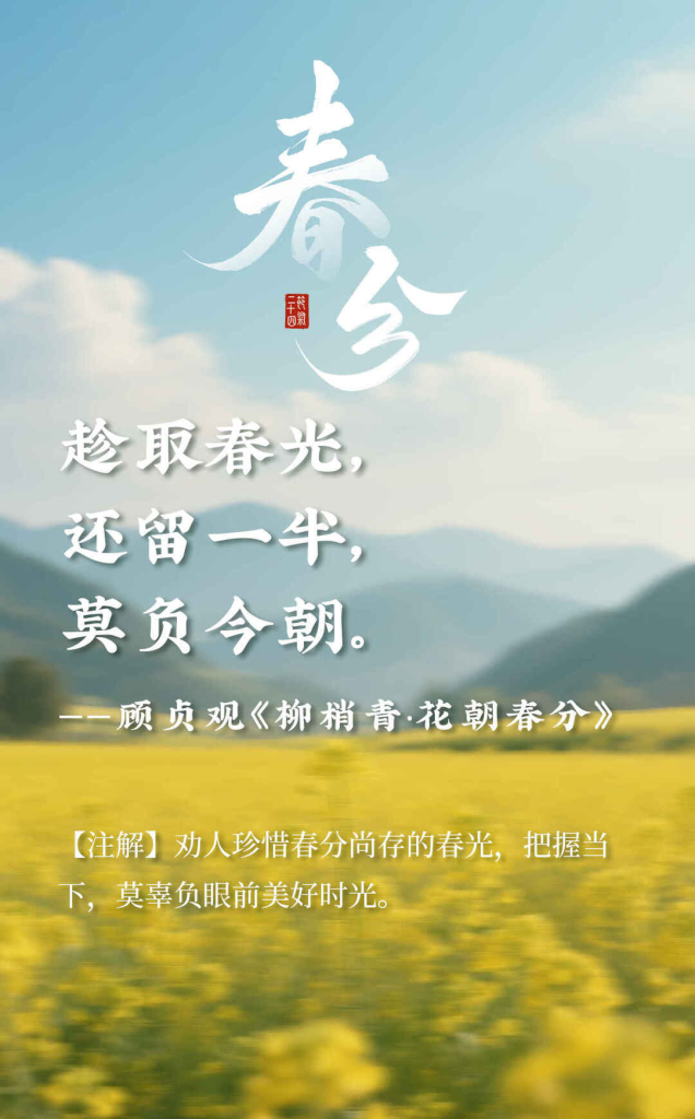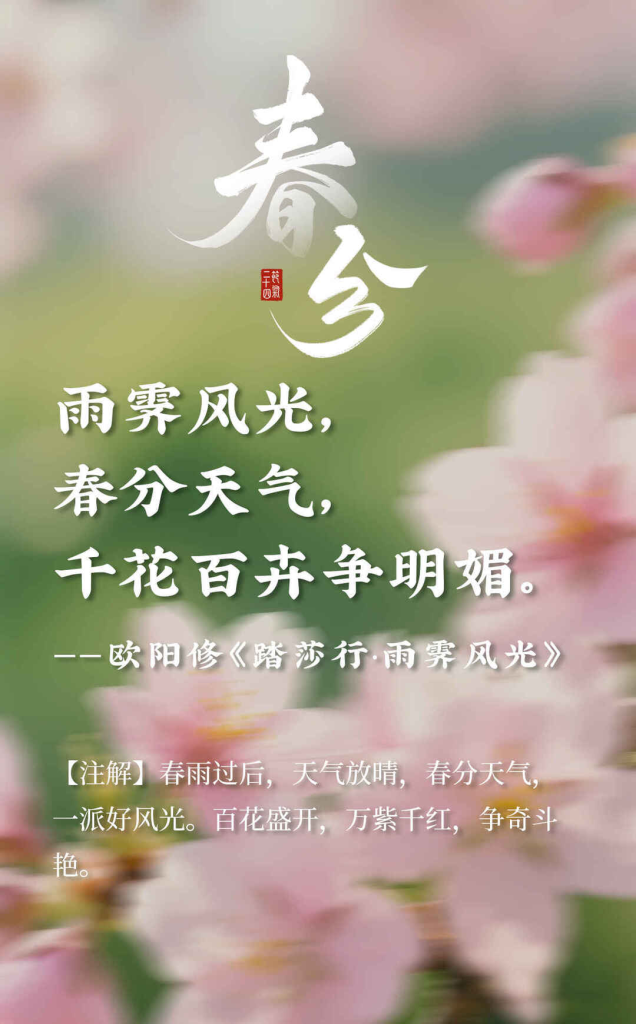 海报组|春分时节,我们不止说春和景明,我们还说…… 2026年3月21日 10:34 阅读(62) 春风如约至,春分暖意生。 昼夜均分,花开正好,万物温柔生长。 一半是昼,一半是夜;一半是景,一半是情。 最美的春分,不只在眼前,更藏在字里行间的温柔春光里。 走进这明媚春光,与江西春色撞个满怀。 来源:大江新闻 本文来自网络,不代表中国博士县—玉山之窗立场。转载请注明出处: https://www.yszc.com.cn/147986.html