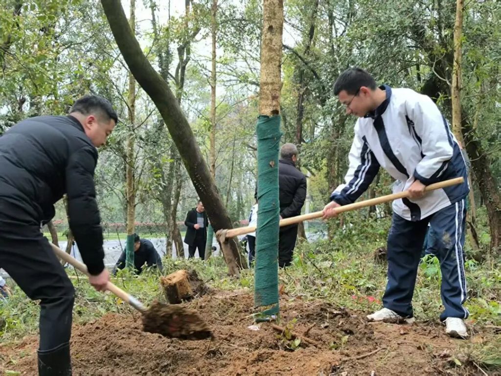 活动现场,林业专家现场示范种植技巧后,学子们多人一组,扶苗、填土、浇水,动作虽显生涩却格外认真。每株树苗入坑后,学子们郑重挂上专属认养牌,牌上印有姓名、种植日期与青春寄语。