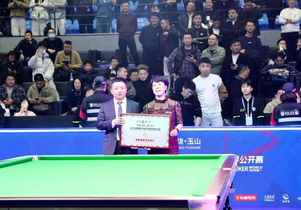 上饶市政府副市长祝美清宣布中国·江西·上饶·玉山2026“鲡康烤鳗·骏马杯”斯诺克世界公开赛闭幕。世界斯诺克巡回赛赛事总监mike genley,中国台球协会副秘书长夏天琦,玉山县委副书记、县长余洪雷,县人大常委会主任张常青,北京星伟体育用品有限公司总经理甘佳岭,江西骏马食品有限公司董事长徐方琴出席闭幕式并为获得冠亚军和单杆最高分选手颁奖、为本届世界公开赛独家冠名单位江西骏马食品有限公司颁发赛事独家冠名企业奖牌。