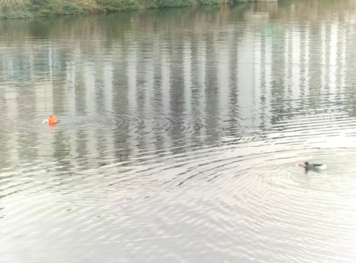 曾凡圣游到离自己近的落水女子身边,迅速将救生圈套在她身上。确保女子暂时安全后,他立刻游向不远处的幼儿,将孩子紧紧托在怀里。