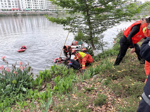 ▲落水母子被成功救上岸(图/受访单位提供)