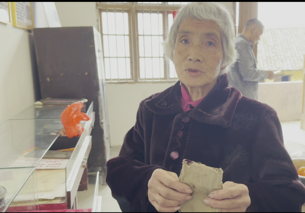 高六月展示红军战士生前用过的草药布袋。摄影|江西日报全媒体记者童梦宁