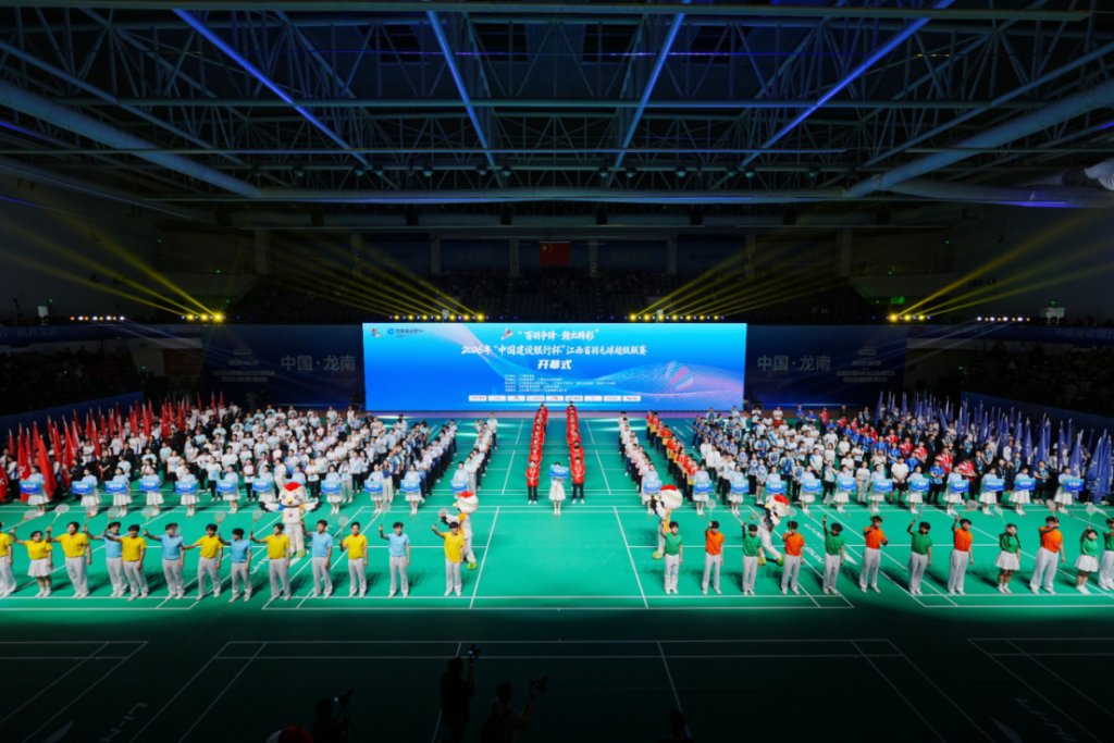 围屋作幕,羽球为媒。3月27日晚,“百羽争锋·赣出精彩”2026年“中国建设银行杯”江西省羽毛球超级联赛开幕式(以下简称“赣羽超”)在龙南市体育中心举行。作为江西省首个实现百县(市、区)全覆盖的羽毛球赛事,本次联赛吸引了全省104个县(市、区)的代表队参与。