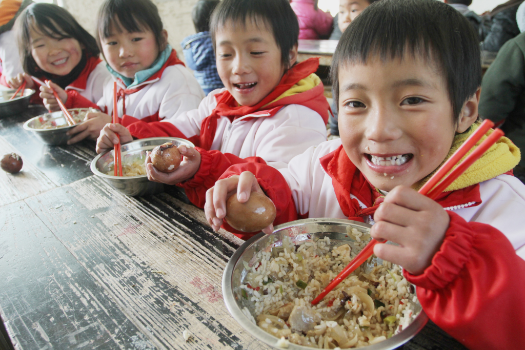这碗饭还为乡村家庭减轻了经济负担。据统计,免费午餐每年为每个家庭节省约1200元餐费,不用再为午餐忙碌奔波的爷爷奶奶、外公外婆放开了手脚,可以专心务农,释放的劳动力使户均收入增加超3000元。