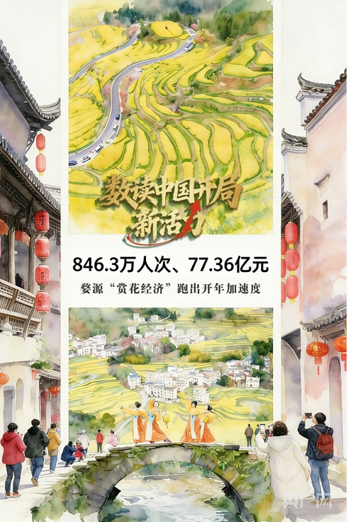 婺源县文广新旅局负责同志介绍说:“2026年1月至2月,全县接待游客846.3万人次,同比增长55.57%;综合收入77.36亿元,同比增长53.95%。”这些数据背后,是婺源十余年深耕农文旅融合的系统性探索。