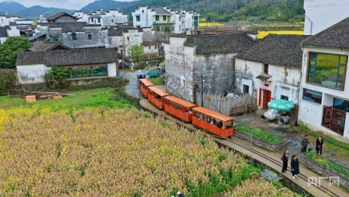 婺源乡村游热度高,花海小火车载游客观春光(央广网发 汪伟勇 摄)