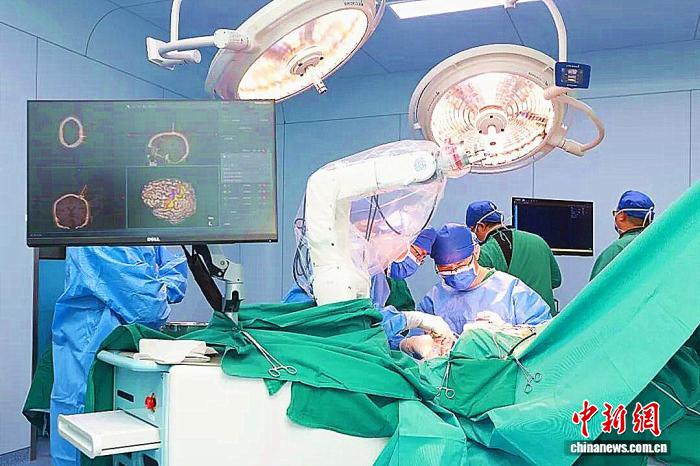 图为3月11日,江西省人民医院开展“高通量脑机接口系统”语言解码植入术。罗珊 摄