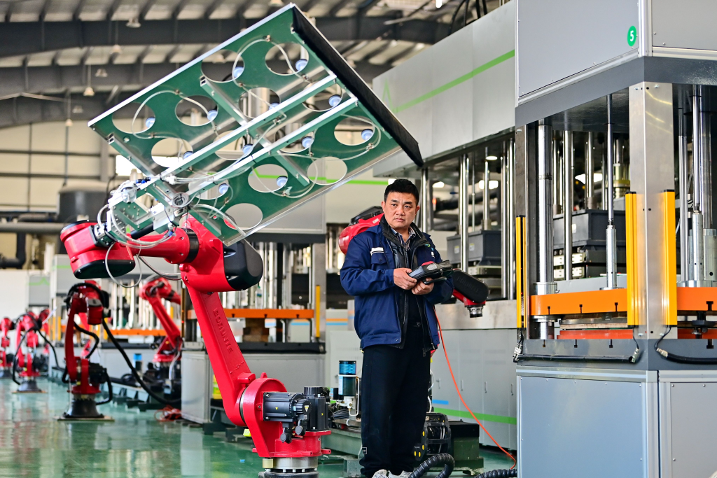 德安县高新技术产业园区的一家科技企业,技术工人在操作智能生产设备。朱海鹏摄
