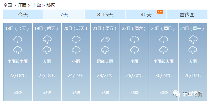 18日白天阴有小雨,晚上中到大雨或雷雨;
