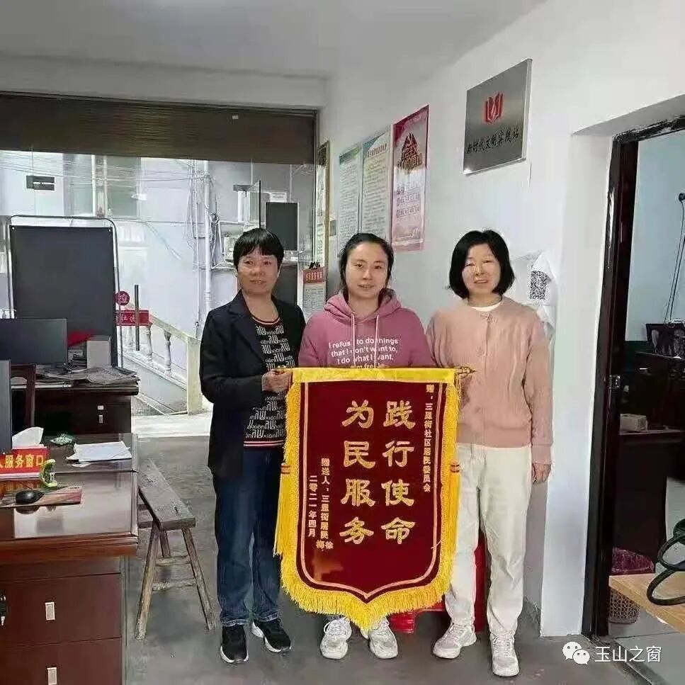 “感谢政府为老百姓排忧解难,我们为社区干部的贴心服务点赞!”近日,家住玉山县冰溪街道三清大道附近的居民徐某和梅某带着写有“践行使命、为民服务”字样的锦旗,为三里街社区干部送上真诚的谢意。玉山县引导各级党员干部紧扣群众最关心、最迫切、最现实的利益问题,不断探索和践行服务群众的新途径、新方法,深入一线、抓住关键、干在实处,切实为群众做好事、办实事、解难事。