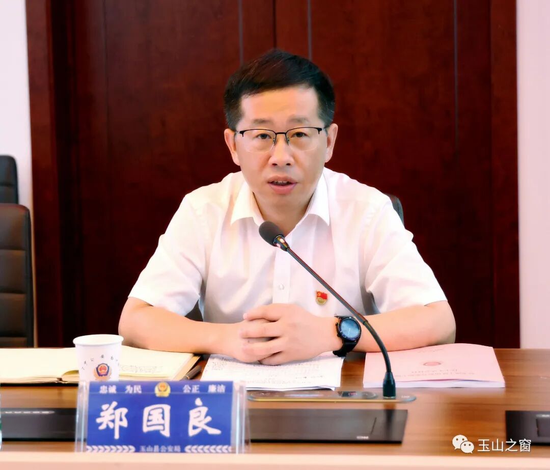 6月2日,玉山县公安局党委班子队伍教育整顿专题民主生活会召开。省第九驻点指导组公安专班组长谢红,县委书记郑国良,市公安局党委委员、副局长戴峰分别讲话,市扫黑办副主任、市公安局二级高级警长左小武等出席。副县长、县公安局党委书记、局长周志强主持并代表县公安局党委班子进行对照检查,副县级干部、县公安局政委丁国庆通报相关情况。