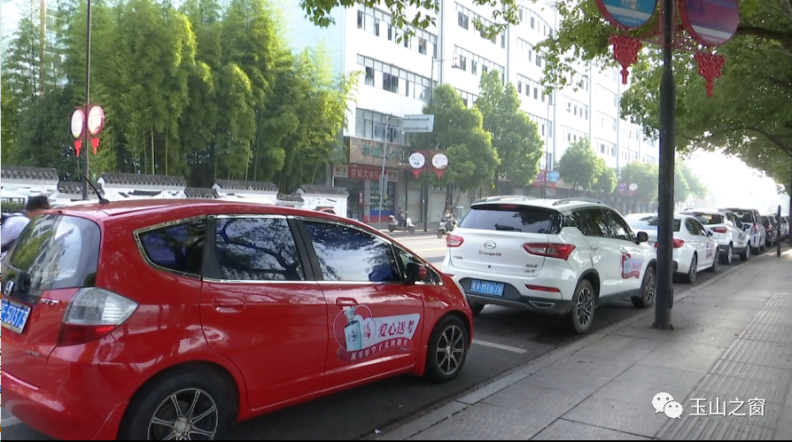 6月7日上午6时30分,在玉山一中门口,由40余辆私家车组成的“爱心车队”都贴上了“爱心送考”的牌子,在高考期间为高考考生免费提供安全、便捷、准时的交通出行服务。