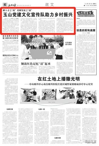 党建文化宣传队伍建设是玉山县夯实基层党建、振兴本土文化、助力乡村振兴的一项基础性工程。自去年5月以来,玉山县通过创新人才选拔、注重培训辅导、激励社会参与等,组建了一支300多人的基层党建文化宣传队伍,打通党的创新理论“飞入寻常百姓家”“最后一公里”的同时,更为乡村振兴提供了一支想干事、能干事的人才队伍。