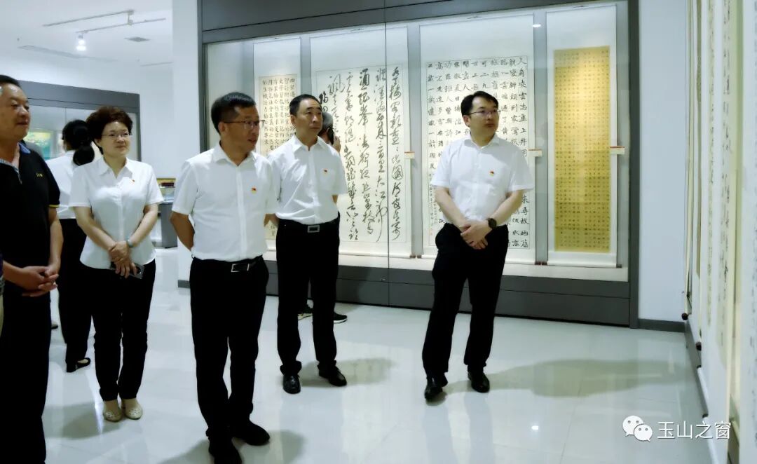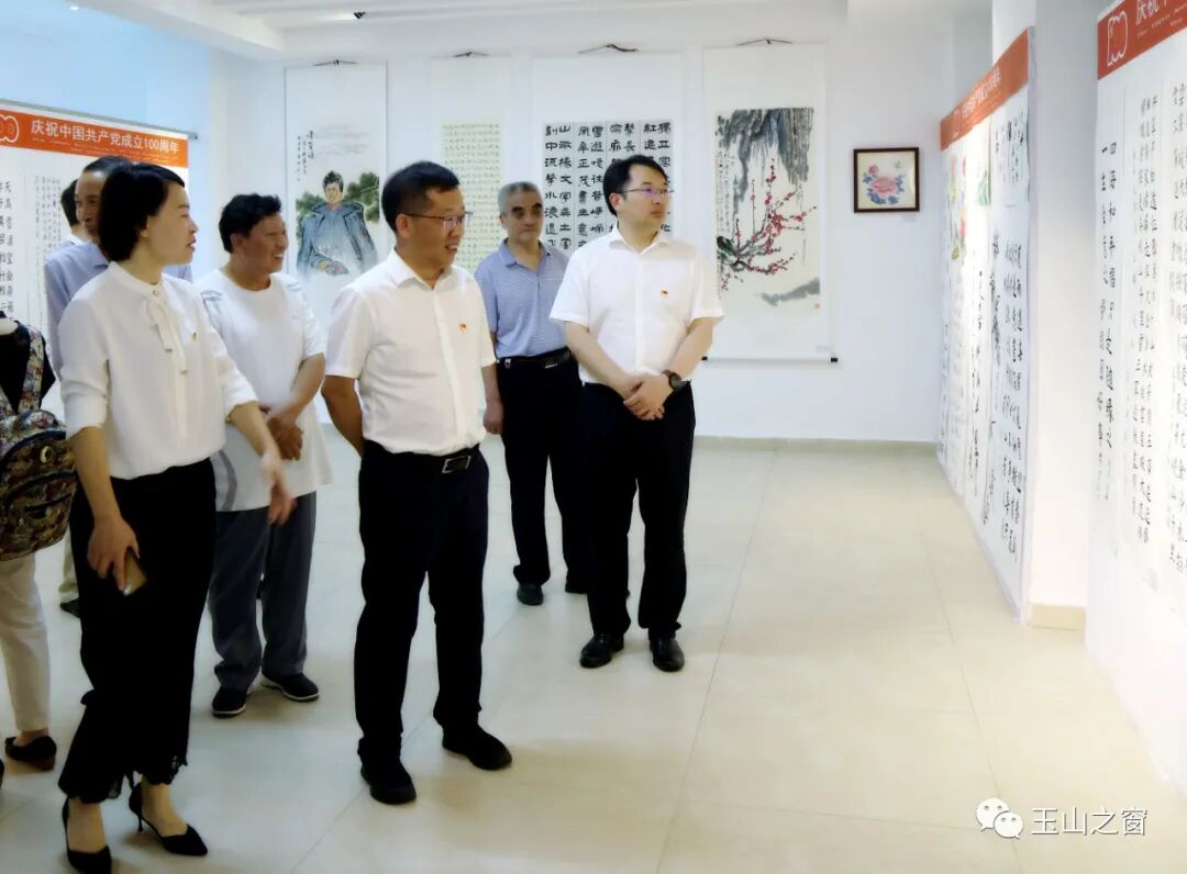 6月30日上午,县委书记郑国良,县委副书记、县长徐树斌,县委常委、组织部长吴斌,县委常委、宣传部长汪美玉等先后到县委老干部局、玉山博物馆参观了玉山县庆祝建党100周年书画摄影和苏区文物展。