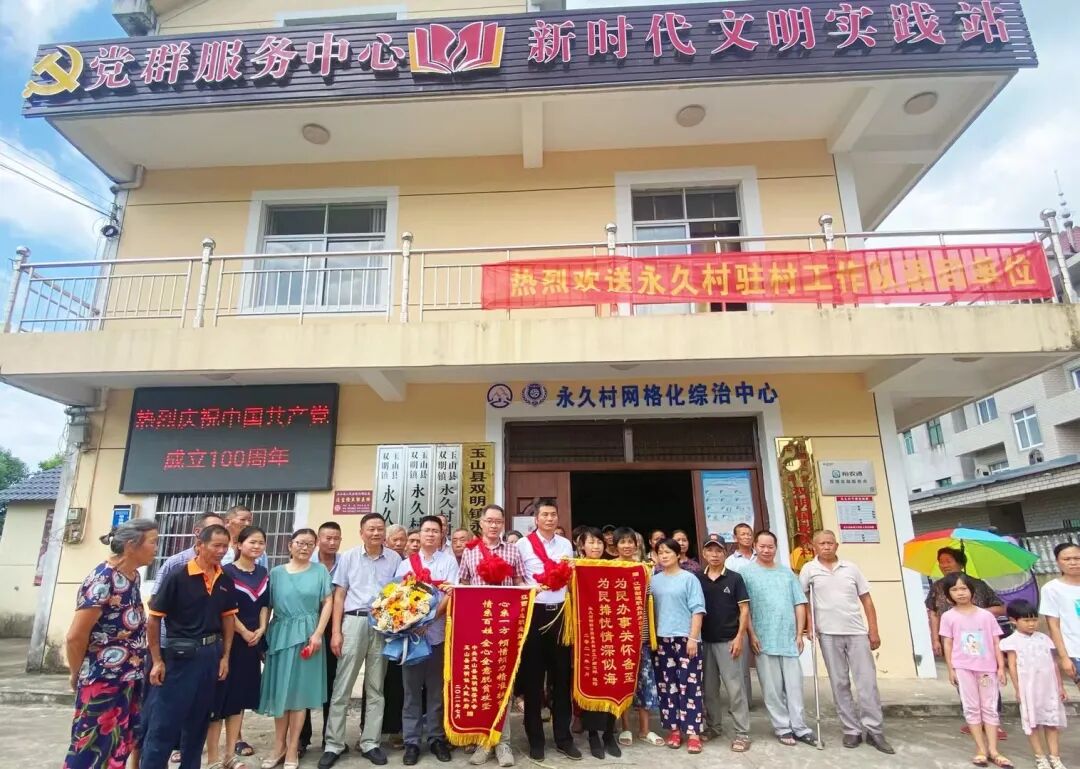 曹书记,记得常回家看看;曹书记,路上小心点;曹书记,请您收下这束鲜花;曹书记,请您收下这面锦旗;曹书记,谢谢您三年来对我的帮助;曹书记,您就要离开永久村了,我们都舍不得您,您要幸福……这感人的一幕,发生在7月22日下午14时的玉山县双明镇永久村村部,群众得知江西制造职业技术学院驻永久村工作队将离开永久,他们自发组织60多人,到村部与工作队满含热泪地告别……