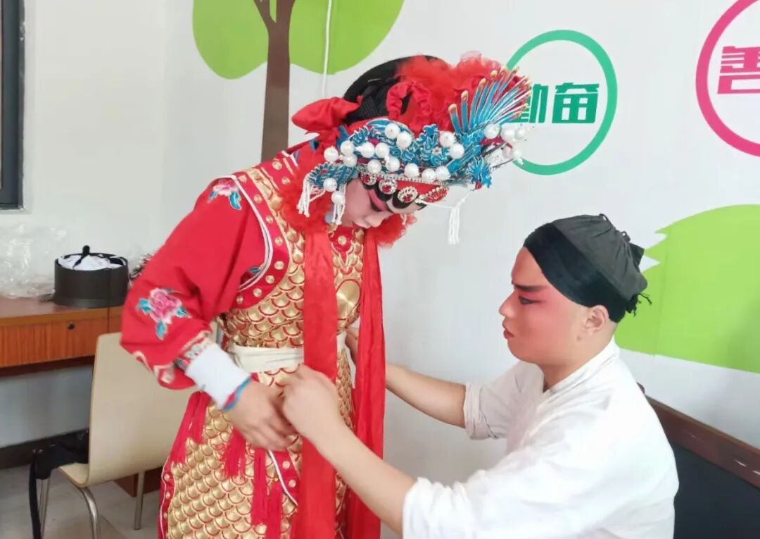 近日,必姆镇新时代文明实践所邀请玉山县潘凤霞赣剧团走进必姆镇石笋村潘凤霞艺术广场,开展送戏下乡活动。演出现场天气虽然炎热,但依然阻挡不了大家的热情,所有演职人员忙着安装设备、调试机器、整理服装、描眉化妆,为马上开始的演出进行最后的准备。