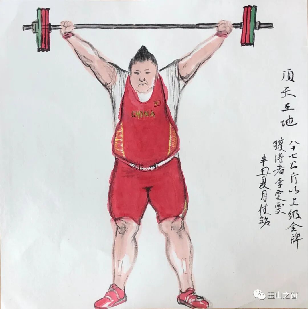 2021年8月8日是中国第十三个全民健身日,同时也是2020东京奥运会闭幕的日子。当日为奥运喝彩组委会举办了“为奥运喝彩·扬体育精神 展艺术魅力”—— 艺术写生团作品展,庆祝东京奥运会顺利闭幕。该活动被当晚《新闻联播》报道,玉山青年画家邱佳铭的作品《顶天立地》赫然在列。 8月9日,记者从邱佳铭处了解到,《顶天立地》画的是举重运动员李雯雯夺冠的一刻。“她是重量级的举重运动员,体型高大,胖胖的稳稳的,年纪很轻很可爱,这种反差感和奋力夺冠的场景感染了我,那一刻我感受到的是‘中国力量,顶天立地’。”