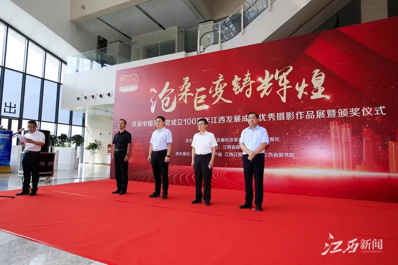8月19日上午,由江西省发展和改革委员会、江西日报社、江西省文化和旅游厅联合主办的“沧桑巨变铸辉煌——庆祝中国共产党成立100周年江西发展成就优秀摄影作品展暨颁奖仪式”在南昌举行。江西省发改委党组成员、副主任李志刚,江西日报社副总编桂榕,江西省文化和旅游厅二级巡视员潘之钰,江西省文联副主席、省摄影家协会主席徐渊明等领导出席活动并为获奖代表颁奖。