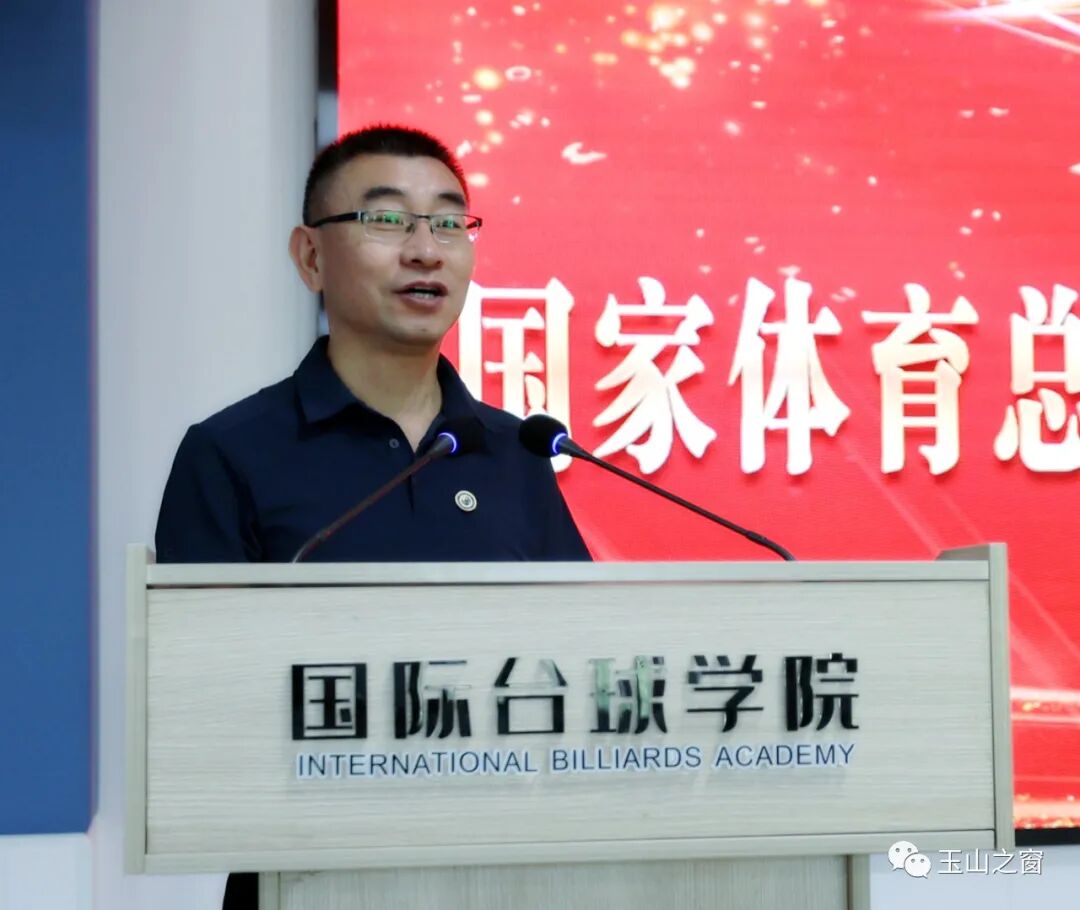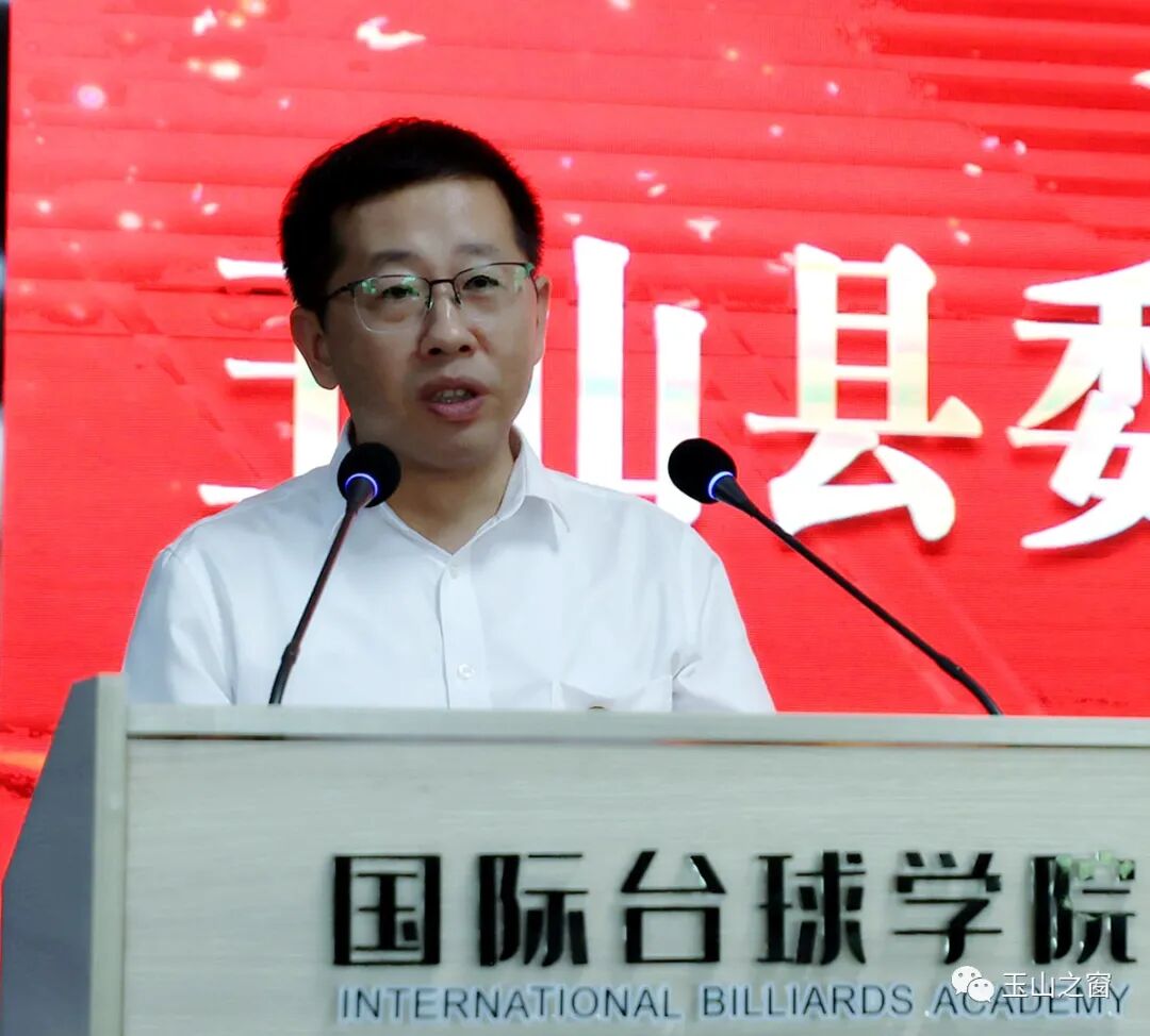 郑国良致辞时表示,近年来,玉山坚持以台球文化为引领、以台球赛事为引力、以台球产业为引擎,让台球为玉山形象、玉山文化、玉山产业增光添彩。台球赛事提高了玉山对外知名度、台球文化孕育了玉山体育产业链、台球产业促进了玉山文化大繁荣。今天,国际台球学院正式开学,学院首批42名来自全国各地的学子将在这里度过三年时光,这是台球运动发展的新起点,也是玉山拥抱世界、世界认识玉山的新窗口。玉山将携手星牌集团,全力以赴把国际台球学院办成世界一流的台球知识高地、台球技能高地、办成开放包容的台球明星高地、俊彩星驰的台球文化高地,着力打造“中国台球之都、世界台球名城”的闪亮名片。
