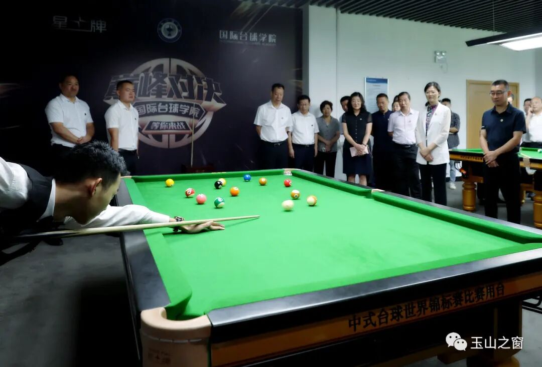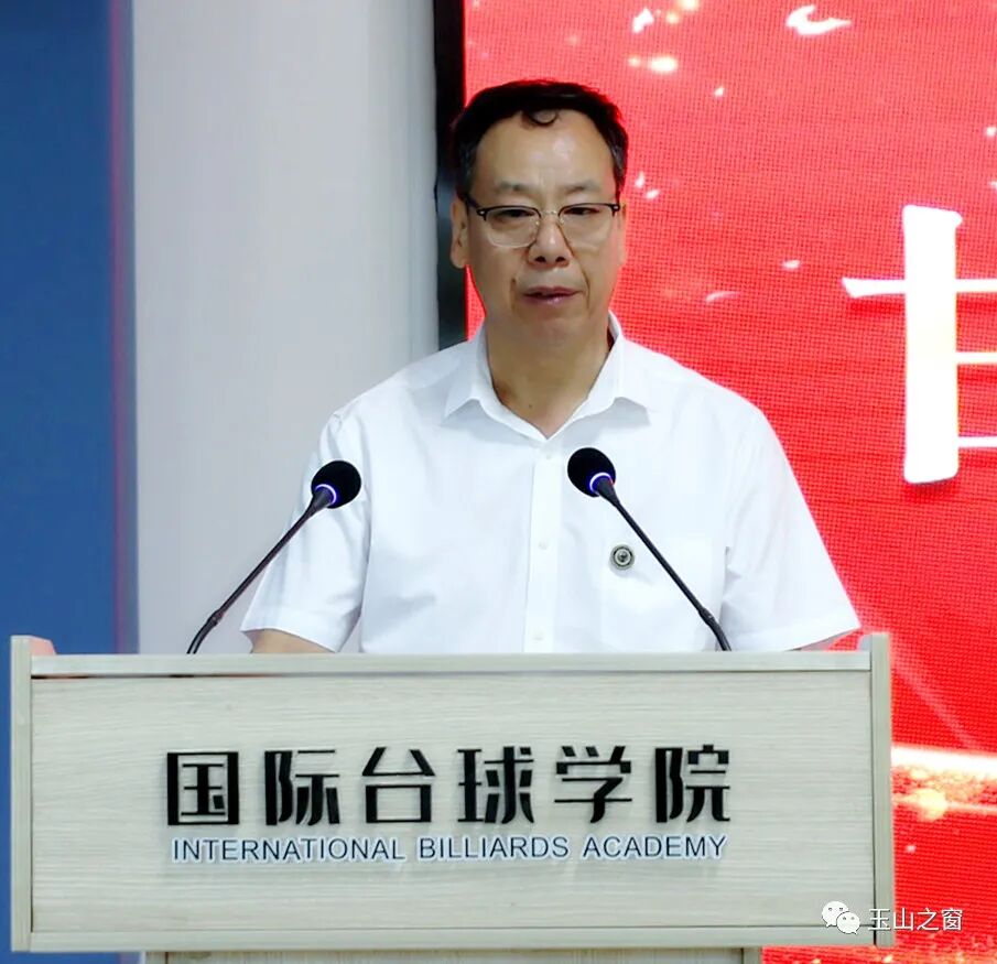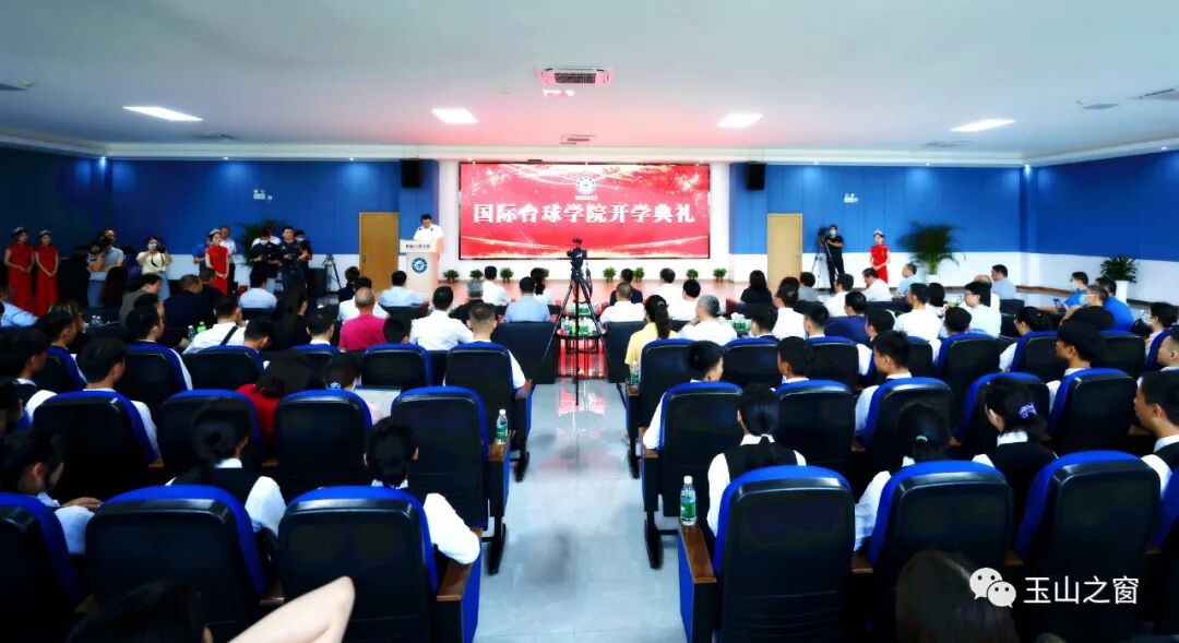 上饶市副市长郑少薇宣布国际台球学院正式开学。国家体育总局青少司副司长王雷,中国台球协会副主席胡爱矾,中国台球协会副主席、国际台球学院院长甘连童,玉山县委书记郑国良,世界台球冠军潘晓婷出席典礼并分别致辞。县委副书记、代县长余洪雷向学院授院旗,省市教育、体育等部门领导以及县领导张常青、汪美玉、李媛媛出席,县政协主席朱明善主持开学典礼。