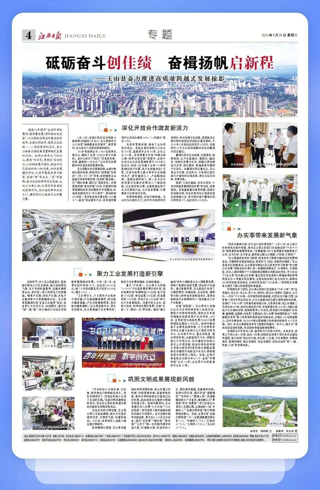 连续八年获评“全省科学发展观(高质量发展)考评综合先进县”、六次荣获浙商省外最佳投资城市、全国文明城市、国家卫生县城……一张张亮丽的名片,是玉山县奋力推进高质量跨越式发展的见证。坐拥江西东大门的玉山,聚焦“作示范、勇争先”目标定位,以创新发展行谋划,担当作为见成效的决心和态度,加快发展建设步伐,扎实开展党史学习教育,坚持“学”字当头,“实”字落脚,奋力迈出改革开放求突破、主攻工业争上游、文明花开香满城的坚强步伐,为打造创新开放东大门、建设现代化美好玉山积蓄力量。
