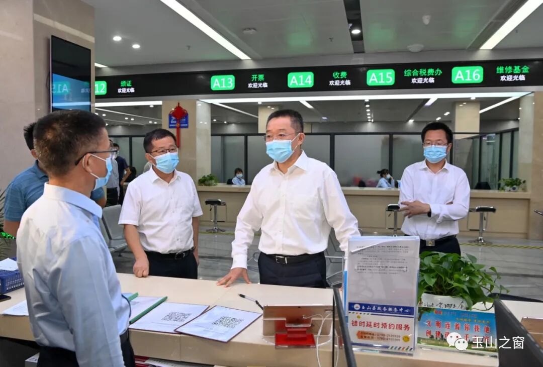 玉山县政务服务中心内人流涌动、繁忙有序。史文斌先后到不动产登记、社会服务、办税服务、项目审批等窗口,与现场工作人员、群众交流,详细了解政府服务工作情况。史文斌指出,要将提升政务服务水平与“我为群众办实事”实践活动有机结合起来,进一步拓展服务领域、完善服务功能、提高服务效能,为群众提供更加优质、高效、便捷的服务。