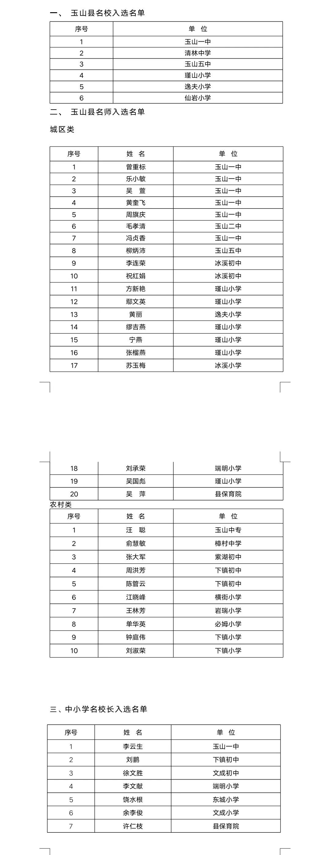 首页 玉山 玉山县“三名工程”首批名校、名师、名校长入选公示