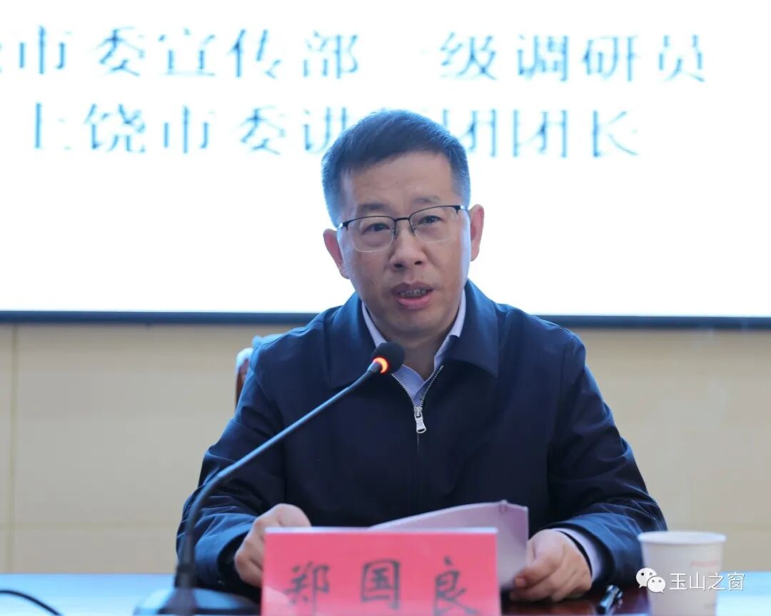 郑国良指出,市第五次党代会是在“两个一百年”奋斗目标历史交汇的关键节点召开的一次十分重要的会议,大会高举习近平新时代中国特色社会主义思想伟大旗帜,坚持把习近平总书记视察江西重要讲话精神作为做好各项工作的总方针总纲领总遵循,聚焦高质量发展,加快跨越式赶超,奋力开启建设区域性中心城市、打造现代化大美上饶新征程。全县上下务必要深入学、系统学、反复学,吃透精髓、把握实质,推动宣传宣讲全覆盖,推动决策部署全落实,在全县广大干部群众中迅速掀起学习宣传贯彻热潮。