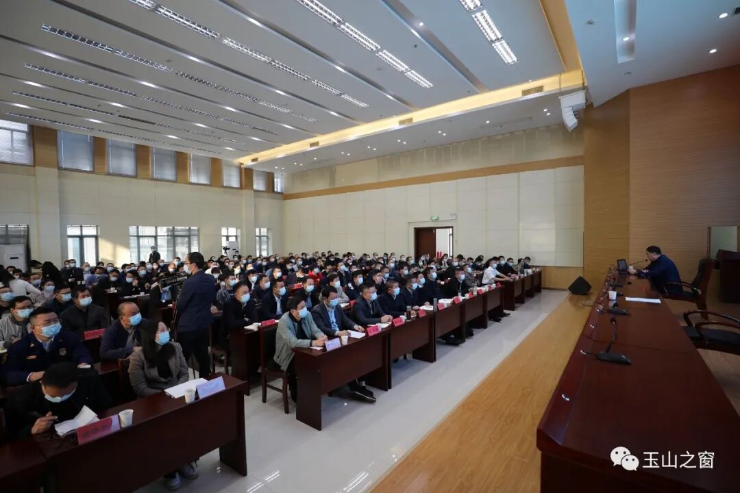 县委书记郑国良主持会议,余洪雷、管宜生、张向东、占长远、吴雄跃等县四套班子领导,县人武部、县人民法院、县人民检察院、玉山高新区主要领导,各乡镇(街道)、县委各部门、县直各单位党政主要负责同志参会聆听授课。