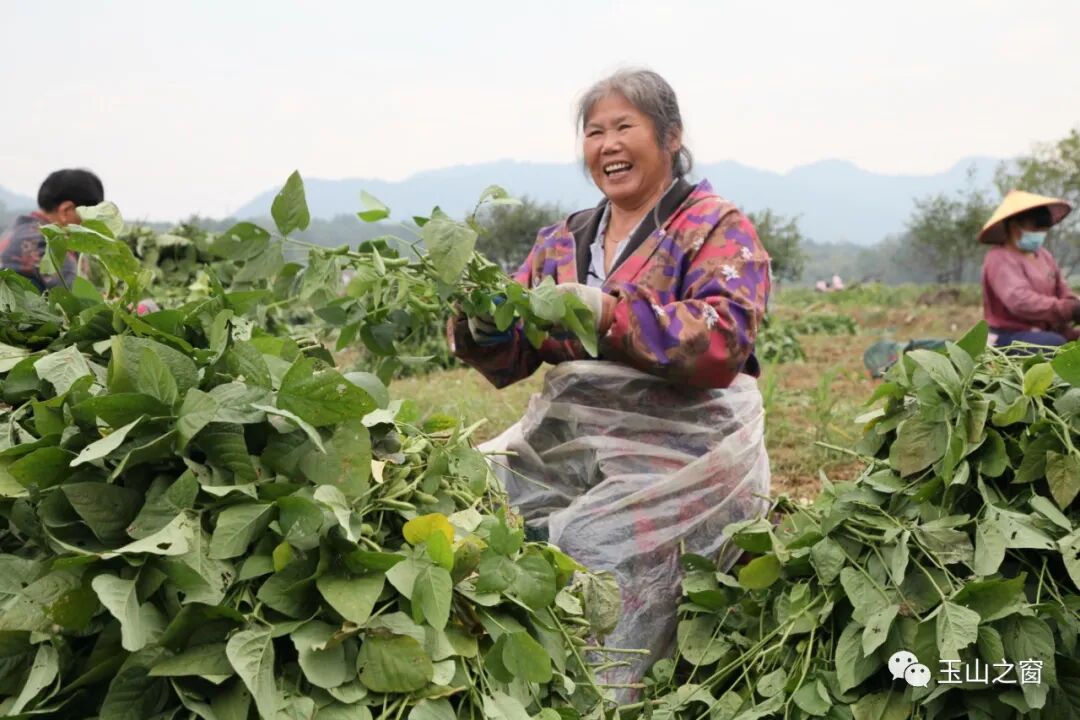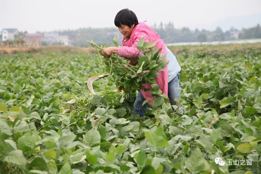 套上手套、戴上草帽,农户们迎着清晨的阳光结伴赶往永久村毛豆种植基地。近日,在玉山县双明镇永久村毛豆种植基地,一株株毛豆长势喜人,上百名村民将毛豆割除、采摘、装袋……场面热火朝天。
