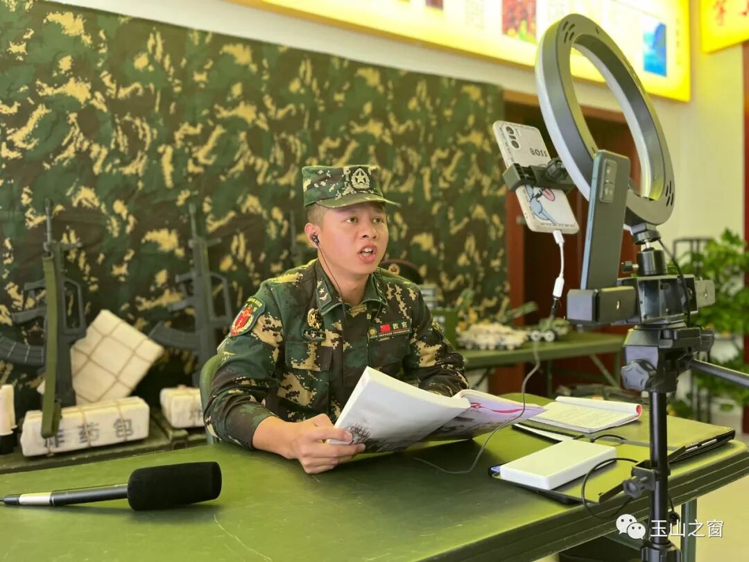 “今天,我们要上的课程是《珍爱和平,但决不畏惧战争》,讲述的是抗美援朝老兵徐享武的故事……” 11月18日,担任信州中专国防班教学任务的玉山一家国防教育培训机构—— 上饶市育鹰公司教员缪威超在向广大青少年开展线上教学,讲述《跨过鸭绿江的玉山男儿》这本书里的抗美援朝故事,受到广大青少年的欢迎。