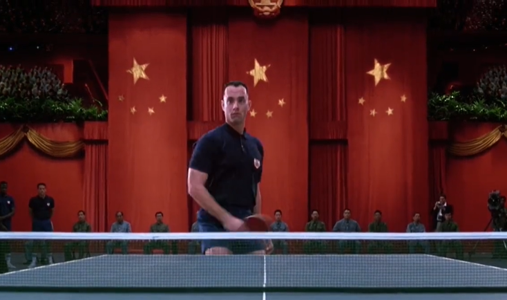 当然,到访中国的乒乓球队里,肯定没有那个脑袋不太灵光的福瑞斯特-甘佛(电影《阿甘正传》的主人公)。