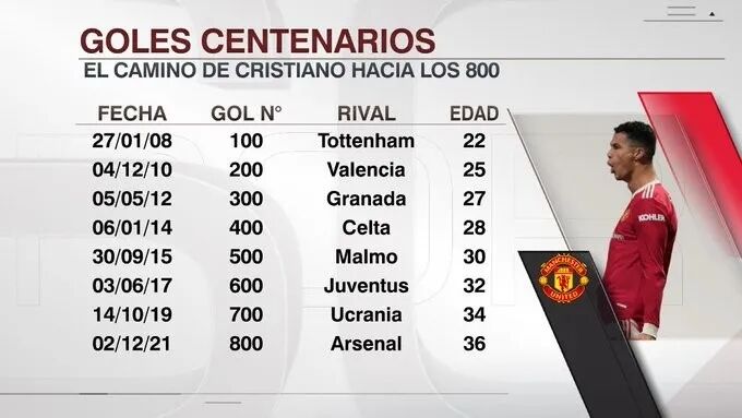 C罗第800球(36岁):阿森纳,2021年12月2日