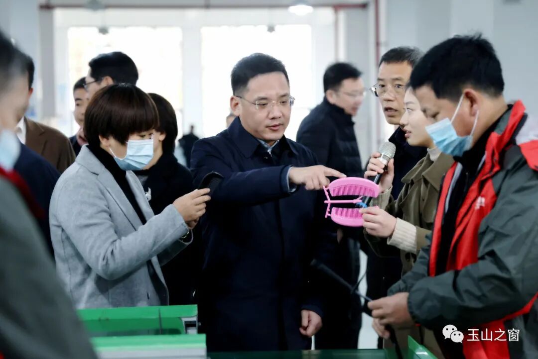 在考察江西伽帛科技有限公司年产350万把免洗头梳子生产线项目时,郭峰了解到该公司采用国内领先的先进生产设备和制造工艺,年产350万把免洗头梳子,年可实现营业收入2.8亿元时,他表示,产品具有良好的市场前景,希望公司严把产品质量关,以质量占领市场,招商引资就是要招引这样有市场潜力、有一定科技含量的项目。