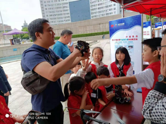 在2021年上饶市暨玉山县科技活动周启动仪式上,近30名科技志愿者冒雨参加了启动仪式,由科技志愿者带领的小记者团在专业老师的指导下兴致勃勃观摩了现场高科技产品展示,安保机器人、抗疫机器人、工业无人机、AI手指等高科技产品深深吸引了小朋友们。小朋友们在专业老师的讲解中亲身感受高科技的魅力。科技成果的观摩丰富了青少年的课外知识,开拓了视野,带动更多青少年讲科学、爱科学、用科学。