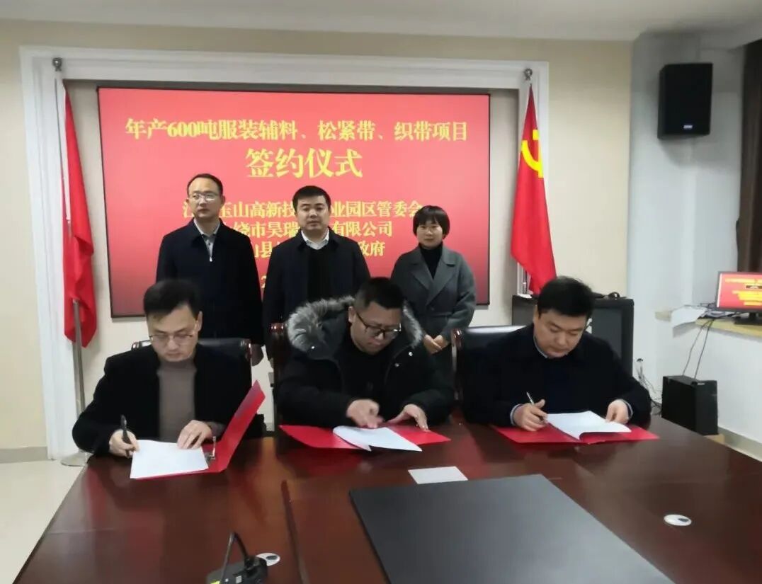 新年新气象,创业正当时。1月6日,由横街镇引进的招商引资企业——上饶飞展织带有限公司、上饶市昊瑞纺织有限公司在县高新区举行入园签约仪式。县委常委、副县长占长远,入园企业负责人等参加签约仪式。