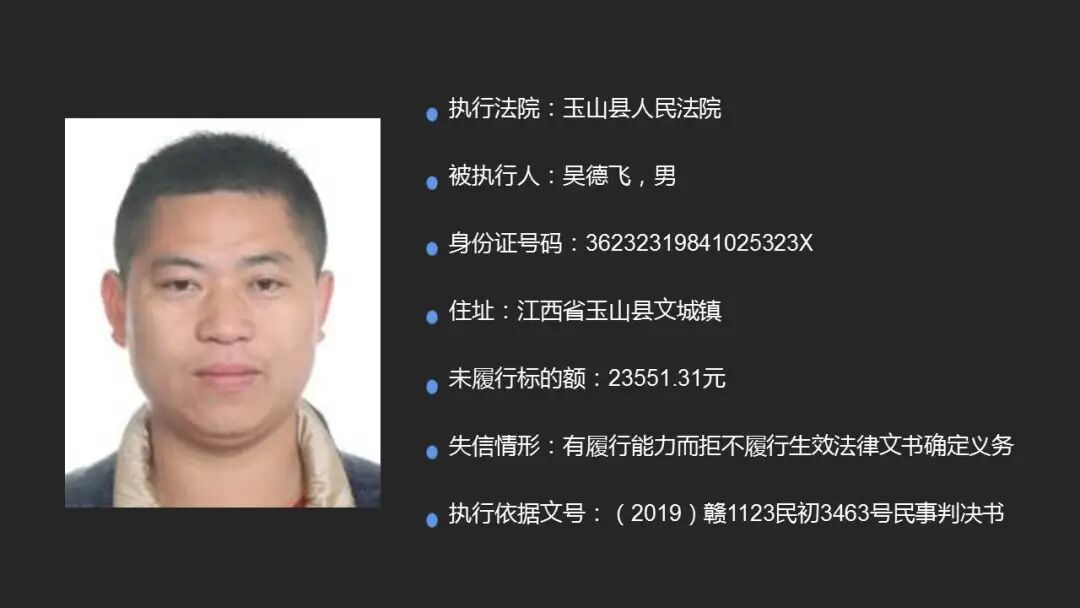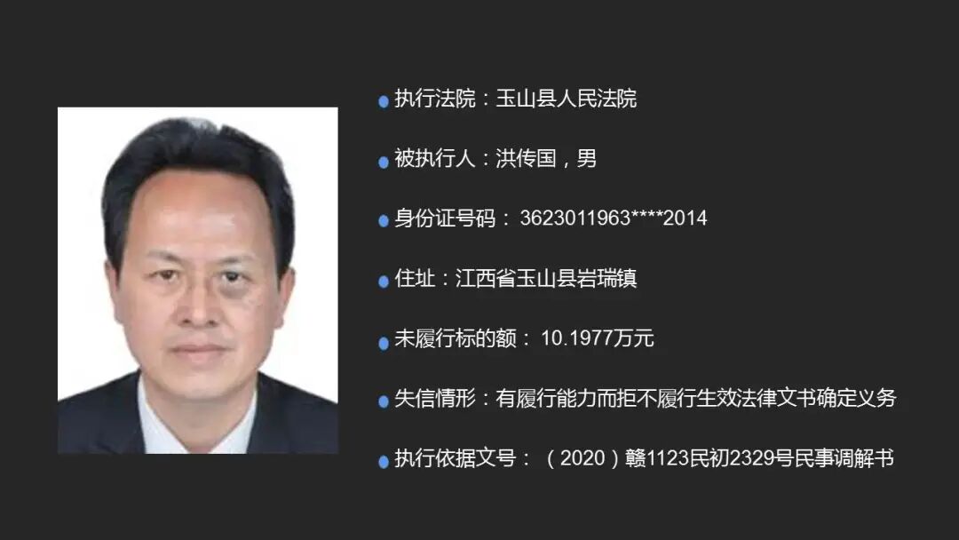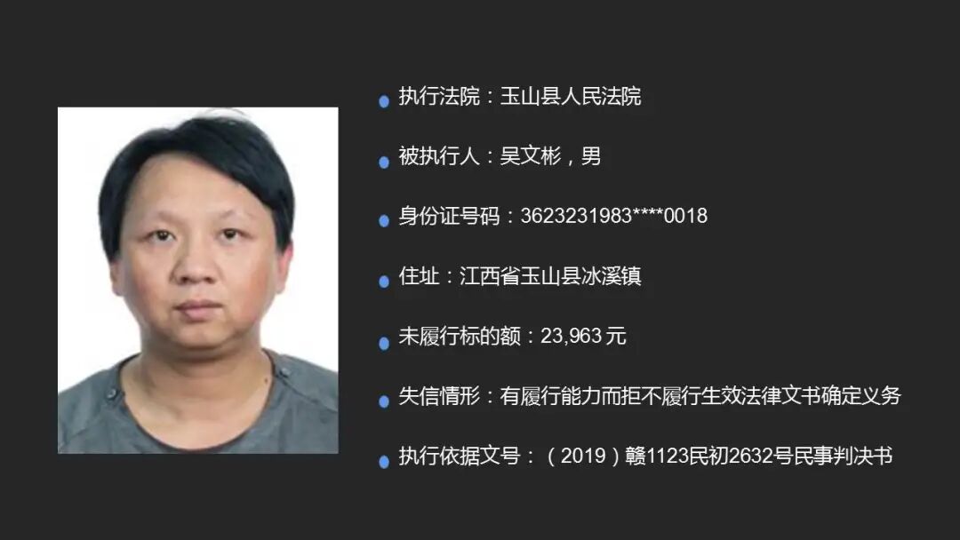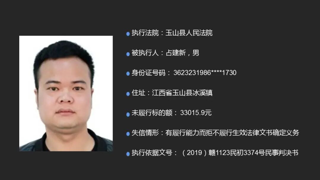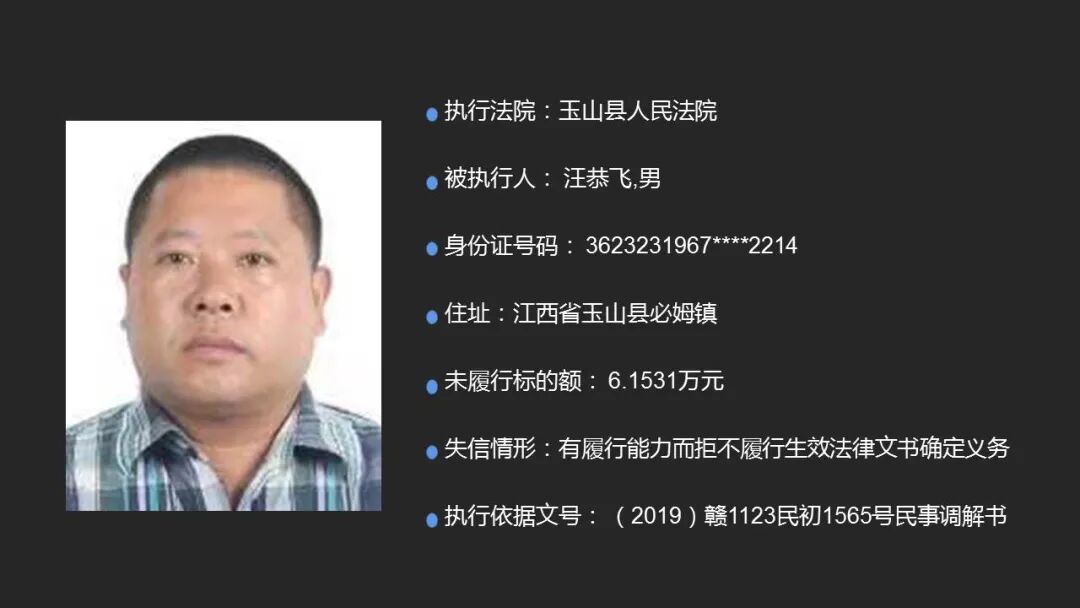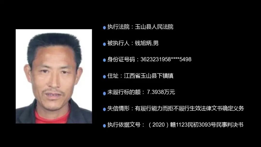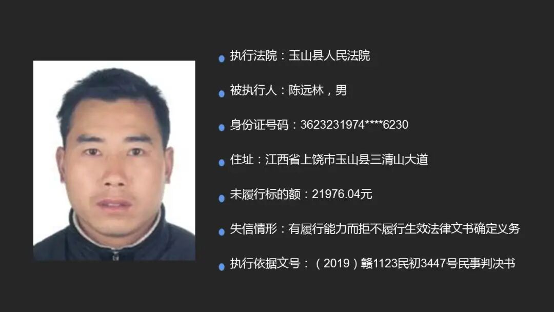 最新!玉山法院发布2022年第一期失信被执行人名单