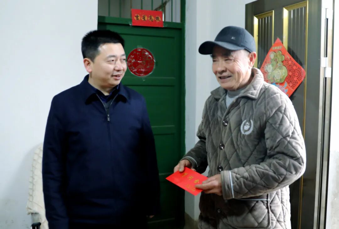 在优抚对象徐金达家中,余洪雷徐金达担任村委会主任期间为岩瑞镇发展作出的贡献表示感谢,希望他今后一如既往地关心支持岩瑞镇、村委会的各项工作,充分运用丰富的工作经验,在美丽村庄建设中发挥余热。同时嘱咐随行的镇村干部多关心关注老党员、老干部的生产生活情况,并祝他们春节快乐