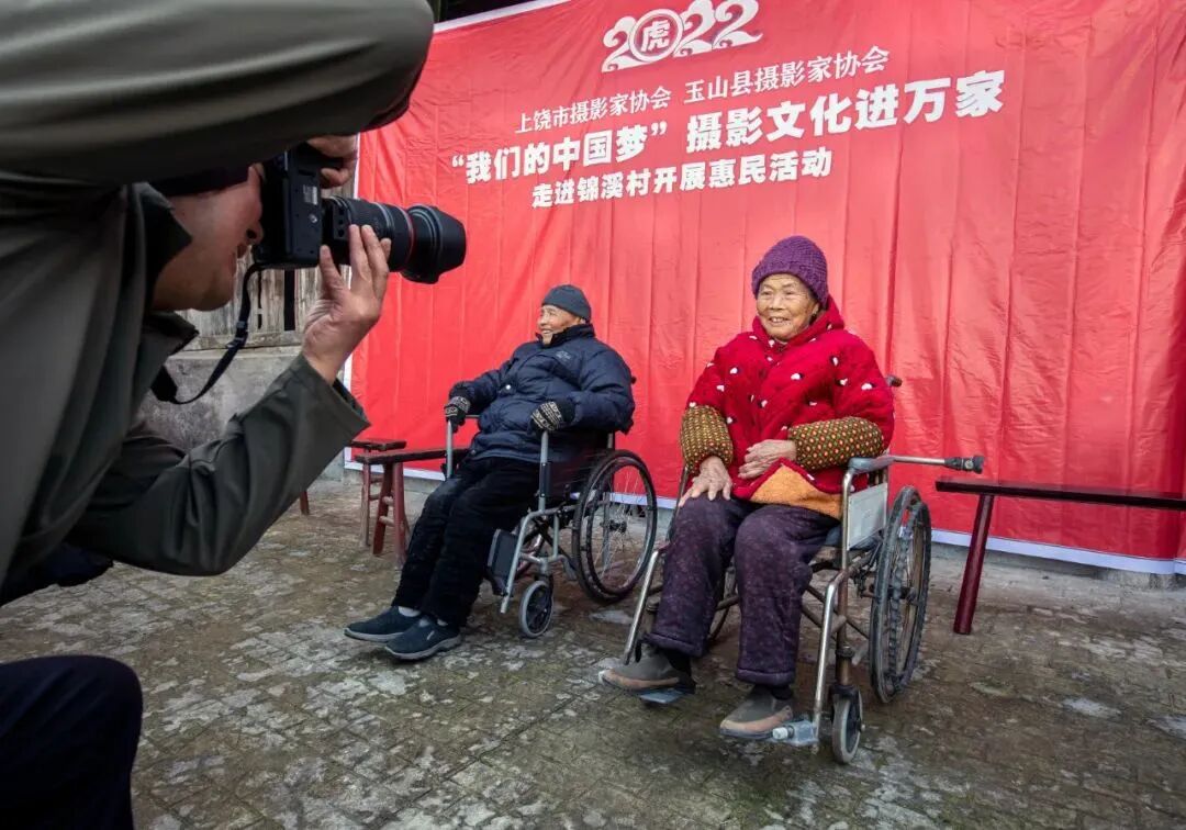 该活动是上饶市摄影家协会2022年度精心组织策划的摄影活动之一,得到了影友们积极响应,许多影友都放弃节假休息,用自己的一技之长为广大百姓服务,以做公益来迎接新年的到来。一个上午,20多位摄影家共为锦溪村的村民们拍摄出了几百张照片,活动现场一片乐融融。