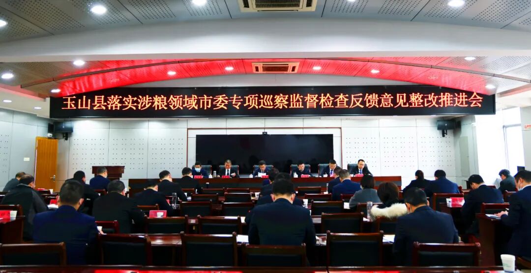 1月29日,玉山县召开落实涉粮领域市委专项巡察监督检查反馈意见整改推进会。县委书记郑国良出席并讲话,他强调,要深入贯彻落实习近平总书记关于国家粮食安全的重要论述,贯彻落实中央有关会议精神,对标对表省、市涉粮问题专项巡视监督检查集中反馈暨整改部署推进会部署要求,进一步凝聚思想认识、逐级传导压力、层层压实责任,全面推动问题整改清零,切实增强粮食安全保障能力,坚决守牢粮食安全底线。