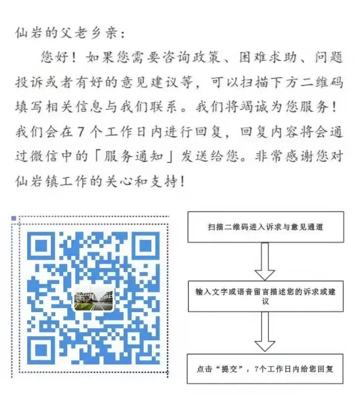 该镇党委副书记汪怀锋向记者介绍,2021年11月,“民情一点通”在“美丽仙岩”微信公众号上线。村(居)民只需要关注“美丽仙岩”公众号,点击“民情通道”,通过扫描“民情一点通”二维码,即可反映问题。该镇还在建立“民情一点通”的基础上,把服务领域延伸到村、社区,依托各村、社区便民服务中心,在10个村、3个社区成立了“民情信息收集中心”,着力搭建以镇“民情一点通”平台为支撑,各“民情信息收集中心”为骨架的民情信息精准服务网络。