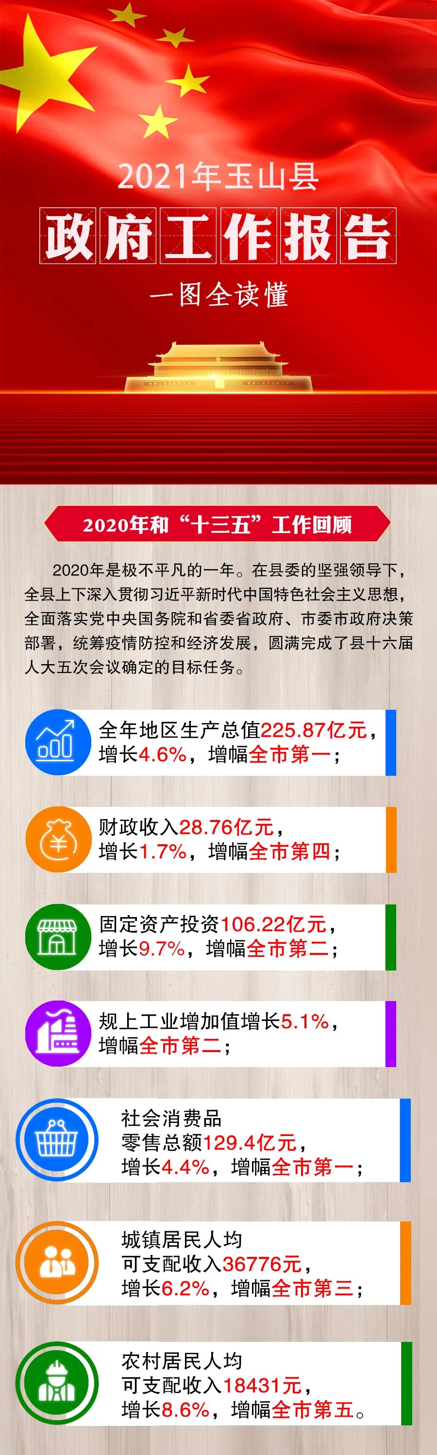 重磅!一图看懂玉山县政府工作报告 2021年3月22日 15:15 阅读(2688) 2020年和“十三五”时期 玉山县交出怎样的答卷? “十四五”规划和二0三五远景目标有哪些? 开新局 再出发 2021年玉山 将有哪些“新气象”? 来,小编带你一图读懂 本文来自网络,不代表中国博士县—玉山之窗立场。转载请注明出处: https://www.yszc.com.cn/4437.html